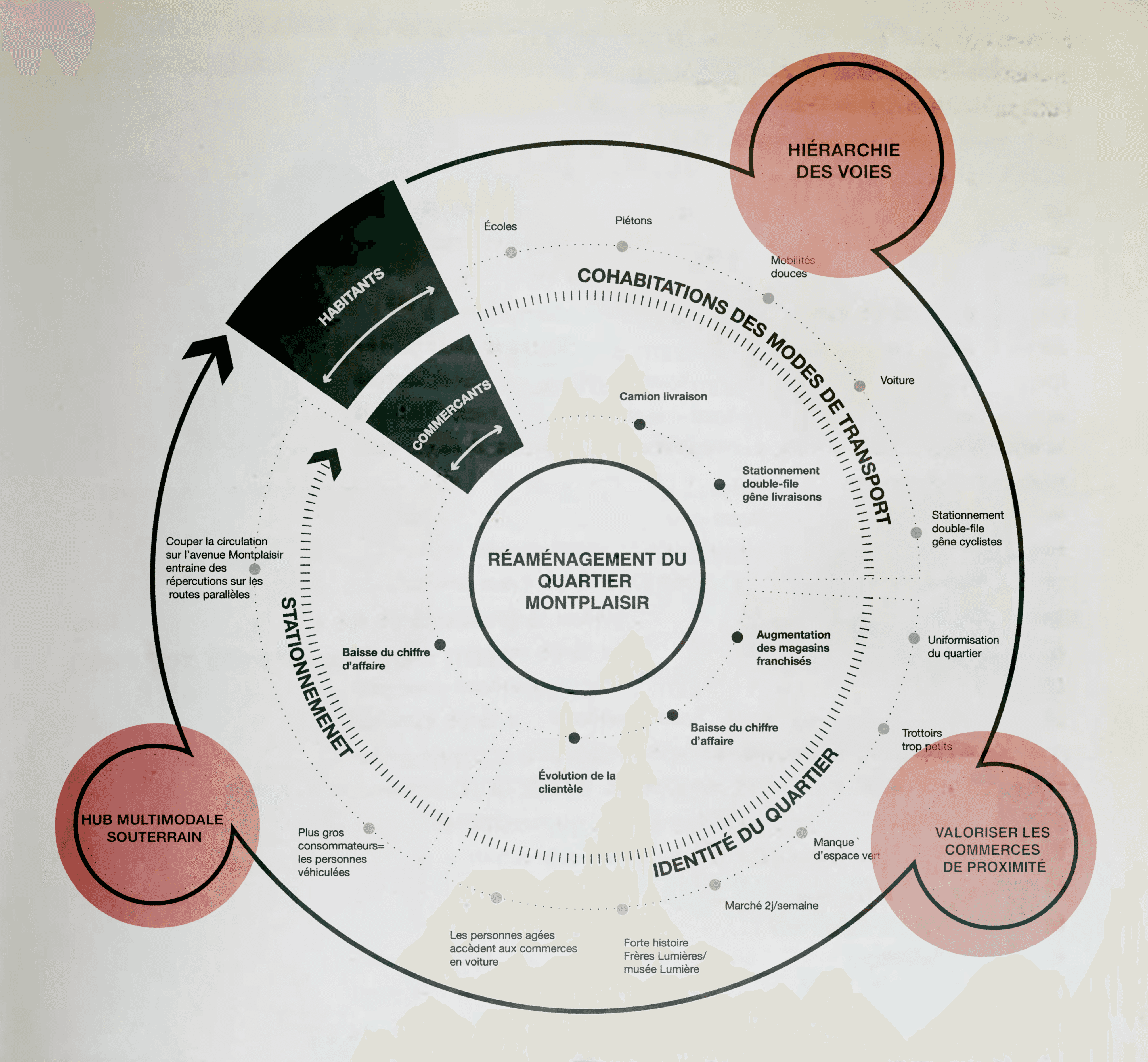 Cette problématique interroge la capacité du design urbain à accompagner la transition vers des mobilités douces tout en préservant le dynamisme commercial. Le projet fait écho à l'approche de Richard Rogers dans Des villes pour une petite planète, où la réduction de la circulation devient la condition sine qua non à la régénération des interactions sociales. L'enjeu est donc de transformer la contrainte de la piétonnisation en un levier de valorisation du quartier.